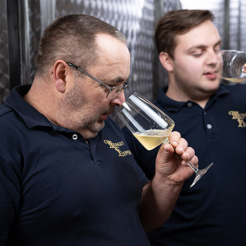 Wir verwenden für die Gärung überwiegend Reinzuchthefen, die auf Basis von Wildhefen gezüchtet worden sind. Die kontrollierte Gärung läuft in unserem Keller unter niedrigen Bedingungen ab, um feine Aromen zu bekommen.